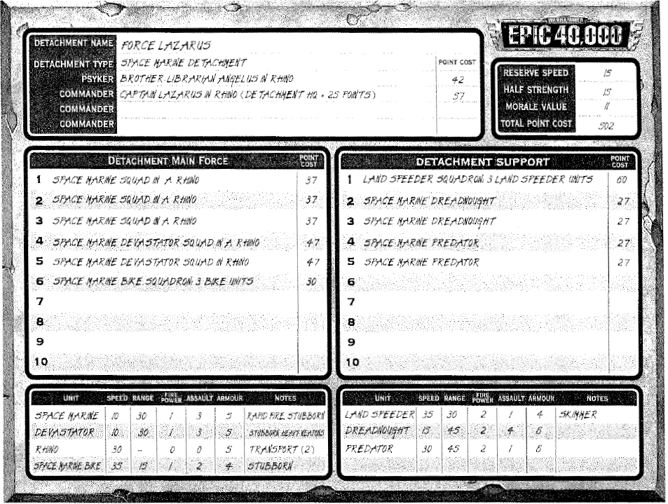 | [Content from Armies Book page 33 to 40. Errata from Firepower #1 page 12 and 15.] |