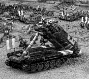 'The Governor stood deep within his command post. Without warning, the ground began to shake. Looking out across the main hangar he saw the floor began to break up. Through the broken shards of plascrete, massive screws appeared followed by the bodies of various sized digging machines pushed forward on massive thrusters. With a venting of gas, locking bolts fired clear of the vehicles to allow their contents of assault troops to disgorge directly into the heart of the fortress.'