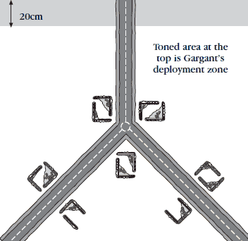 - Deploy your Great Gargant anywhere within 20cm of your table edge, as shown on the deployment map.